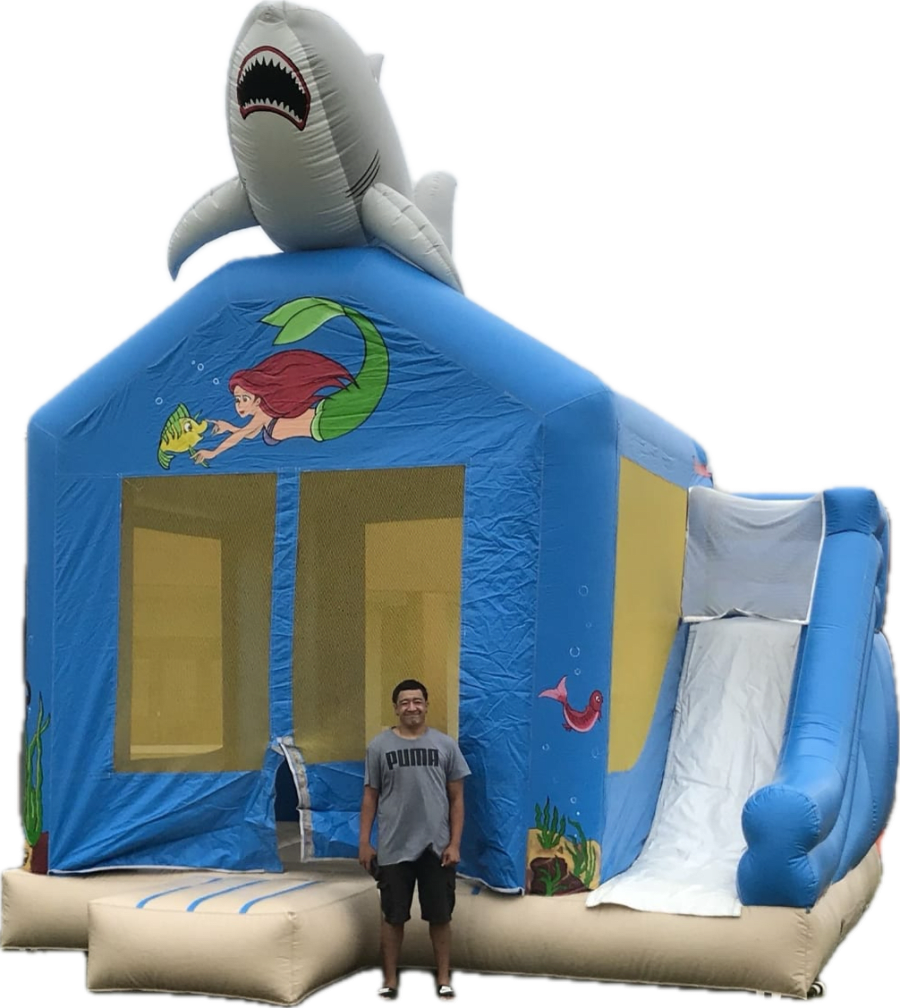 Dive into underwater adventure with the Shark Castle! Kids can bounce, climb, and slide in this ocean-themed inflatable, imagining they’re swimming with mermaids while the King of the Ocean watches over them.
