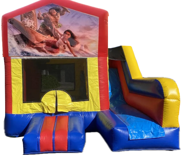 Bring the magic of Polynesia to your party with the Moana 2: Island Adventure Castle! Kids can bounce and climb through a vibrant tropical island scene, complete with palm trees and ocean waves, then race down the slide for even more fun and adventure.